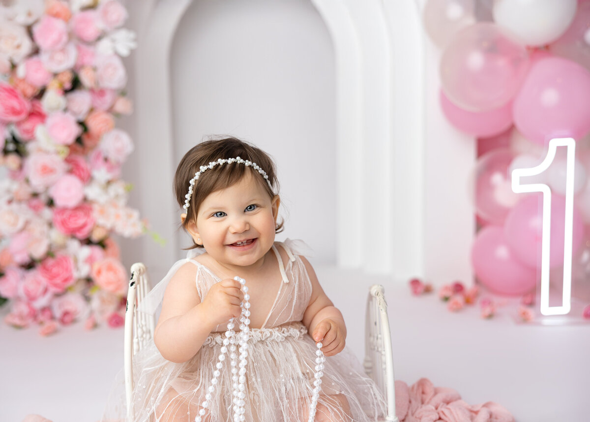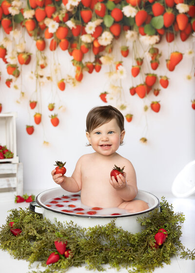Mia’s milestone session was a beautiful blend of fun and elegance. The strawberry-themed setup brought out her adorable personality, while the white floral arch and pink and white balloons added a soft, festive atmosphere—making every moment feel as special and vibrant as she is.