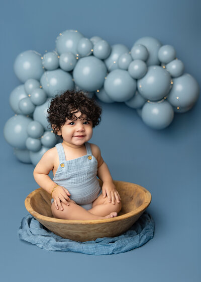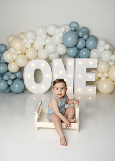 Jonah’s milestone session was such a fun celebration! The blue balloons and twinkling lights made a cool, festive backdrop, and the clean white setup with the big glowing number one was the perfect way to mark his first big milestone. It was all about capturing those joyful, playful moments that make this time so special.